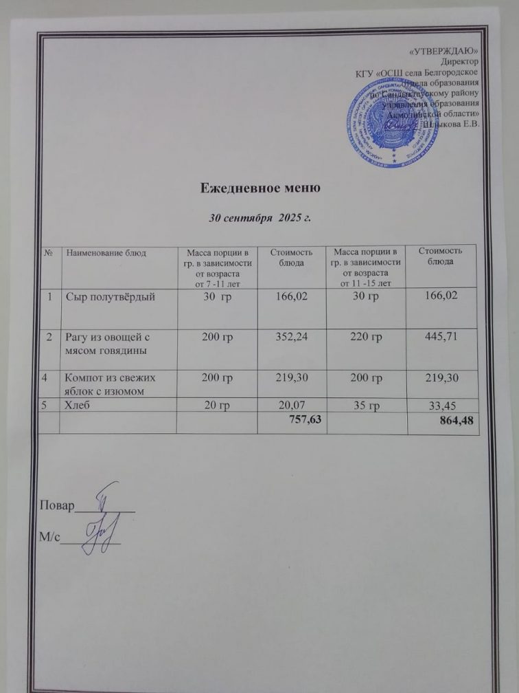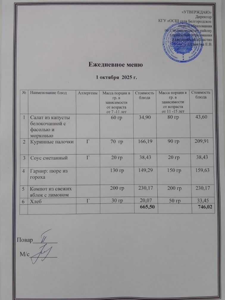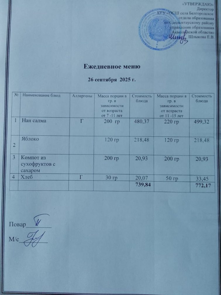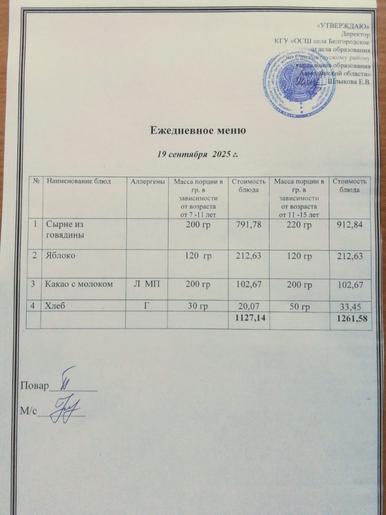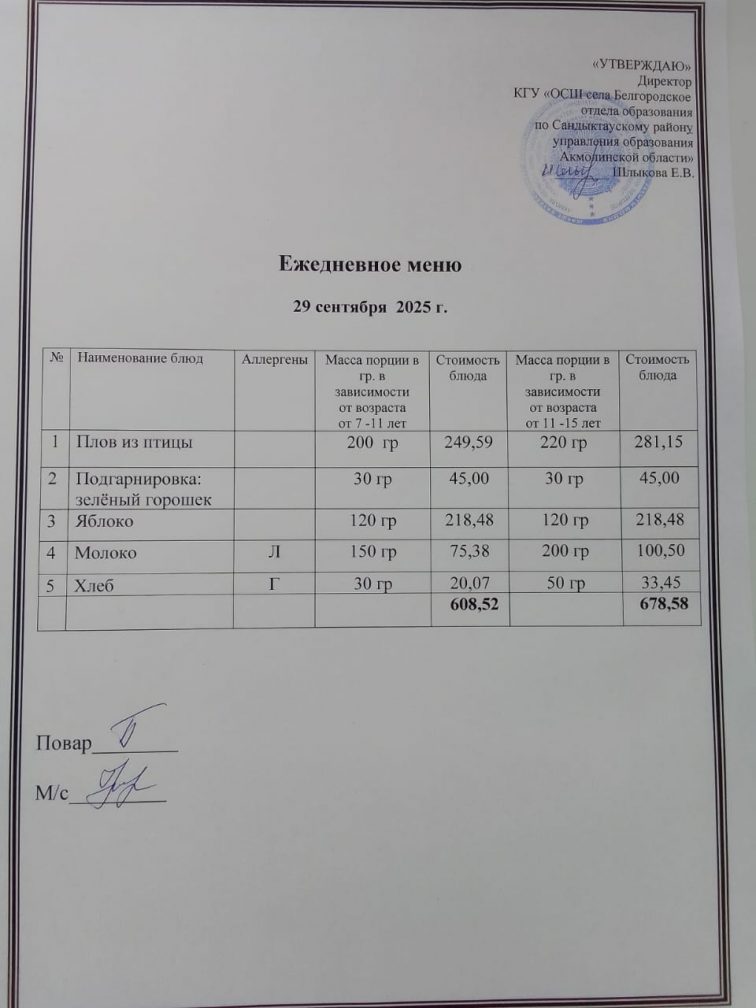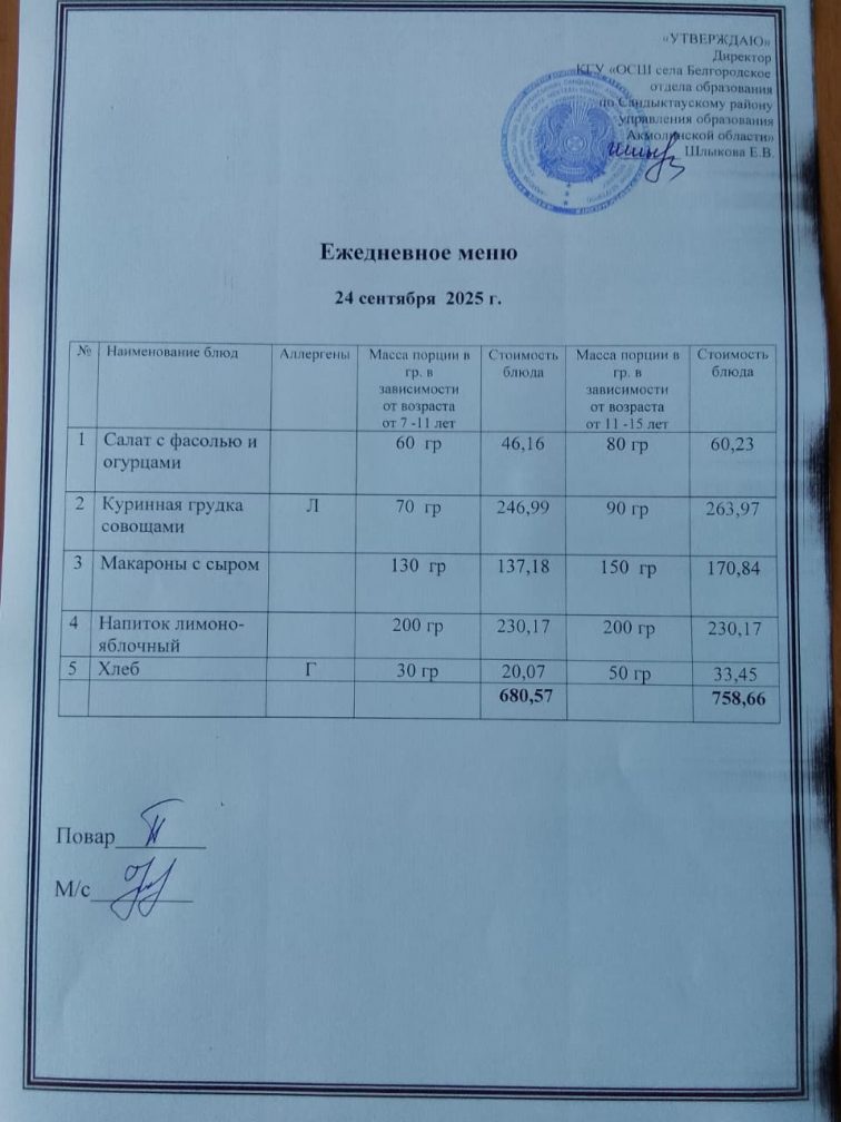 Апталық мәзір 1 тоқсан 2025-2026 оқу жылы